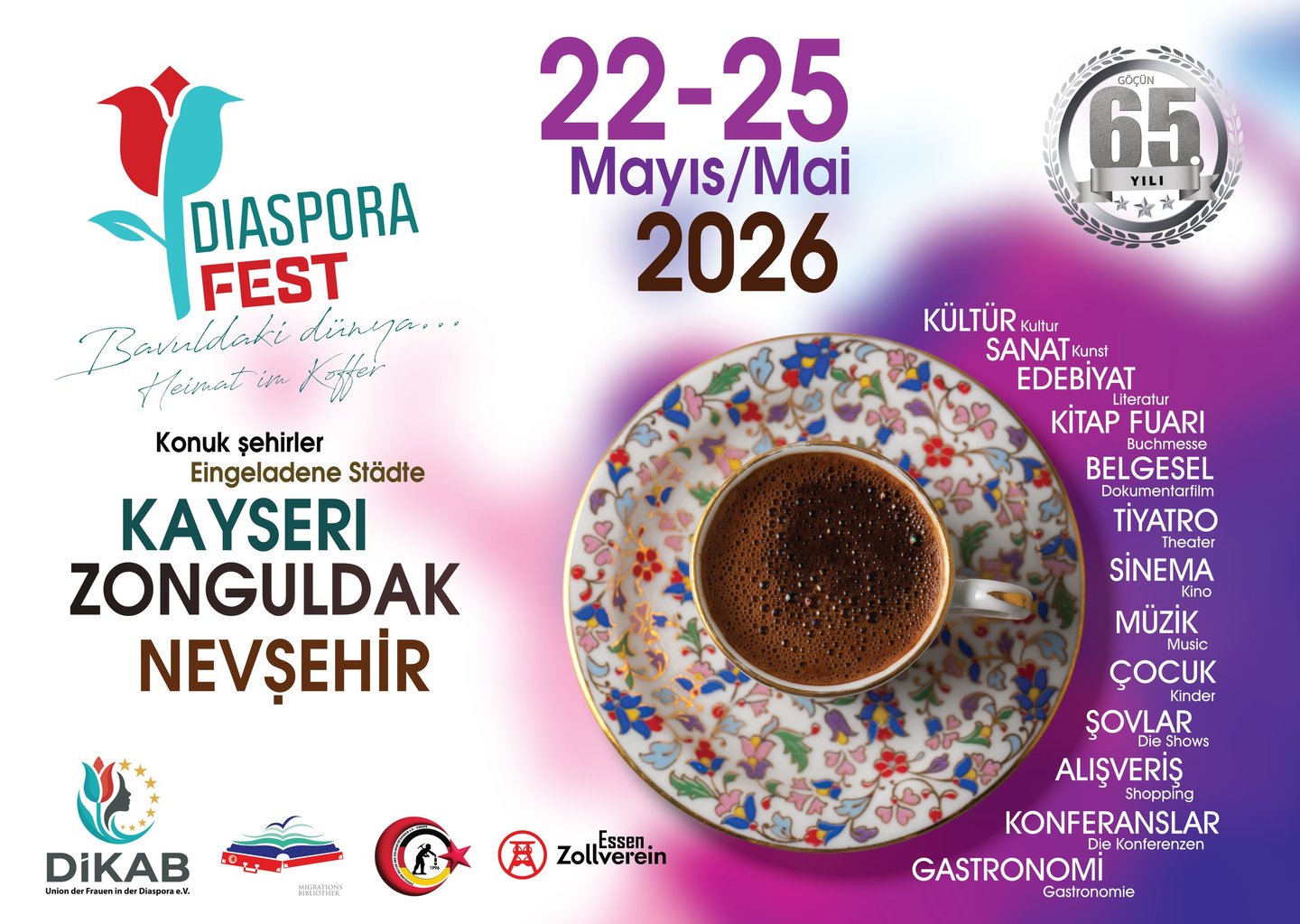 Diaspora Kadınlar Birliği DİKAB e.V olarak, Göçün 65. yılında, Türk Diasporasının tam kalbinde, sembolik bir mekanda, Essen Zollverein'da muhteşem bir Festival düzenliyoruz...